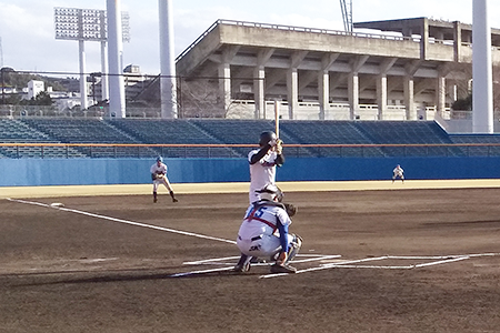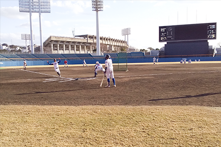 投手陣は、投内連携や各自投げ込みを行いました。 野手陣は6班に分かれ、本球場ではバッティング、サブグラウンドでは守備に重点を置いたメニューをこなしました。そして最後に実戦形式の守備・走塁練習に取り組みました。